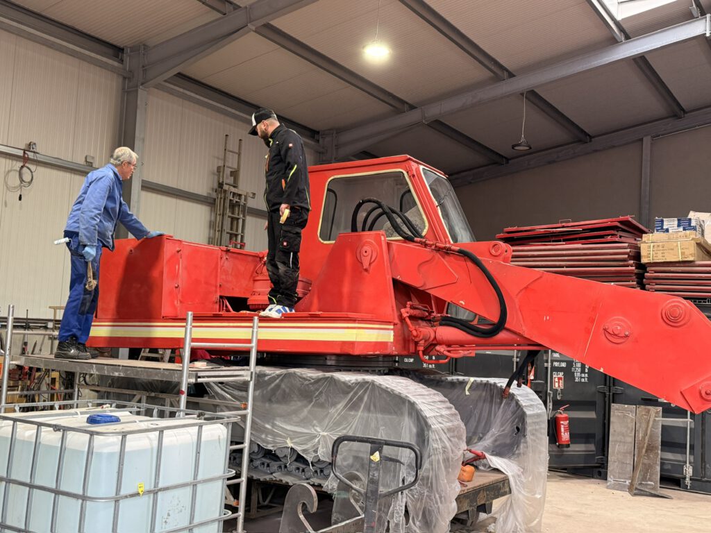 Während des Besuchs wurde weiter mit Hochdruck an der Instandsetzung gearbeitet. Der Fokus lag am Wochenende auf Vorbereitungen für die anstehenden Lackierarbeiten. Zudem wurde eine Lösung gefunden, um die markanten Hydraulikschläuche des Baggers wieder instand zu setzen – damit der RH 5 künftig nicht nur technisch, sondern auch optisch im neuen Glanz erstrahlt.